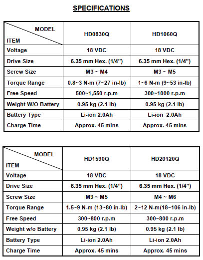 Model: HD0830Q / HD1060Q / HD1590Q / HD20120Q