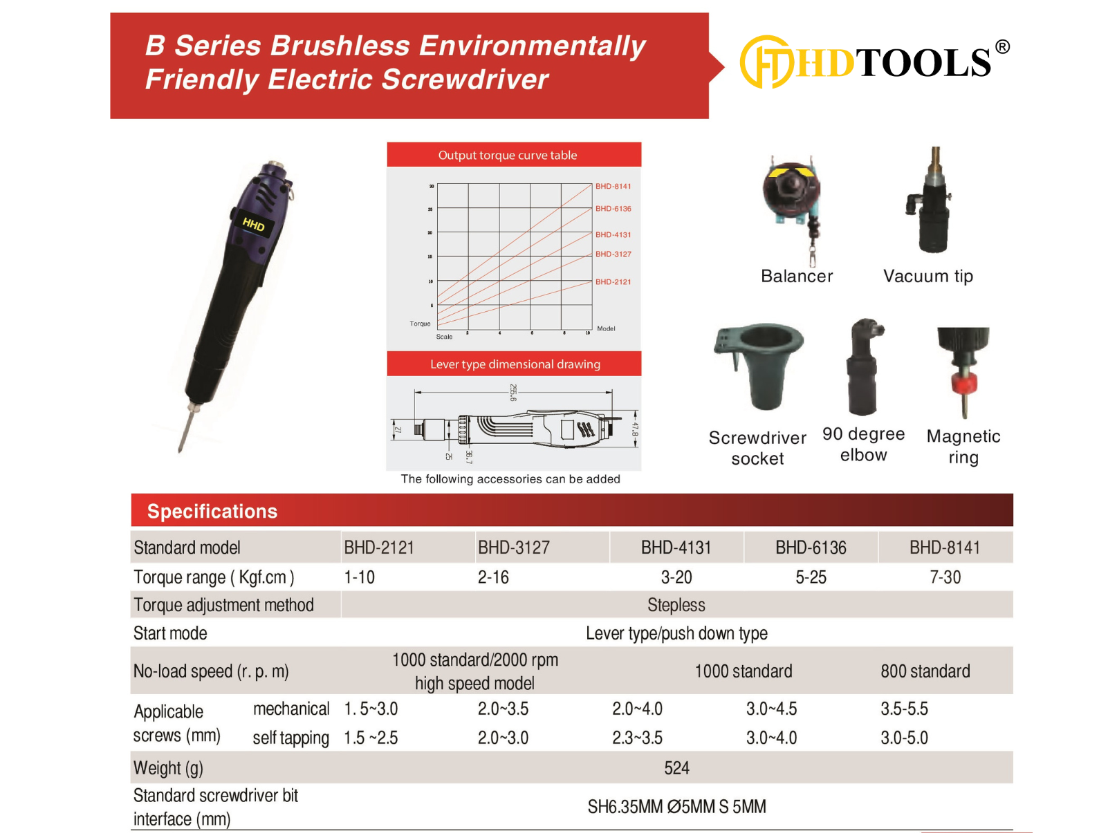B Series Brushless Environmentally Friendly Electric Screwdriver BHD-2121 / BHD-3127 / BHD-4131/ BHD-6136 / BHD-8141