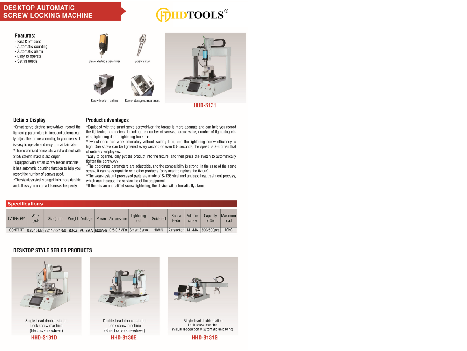 Model: DESKTOP AUTOMATIC SCREW LOCKING MACHINE HHD-S131