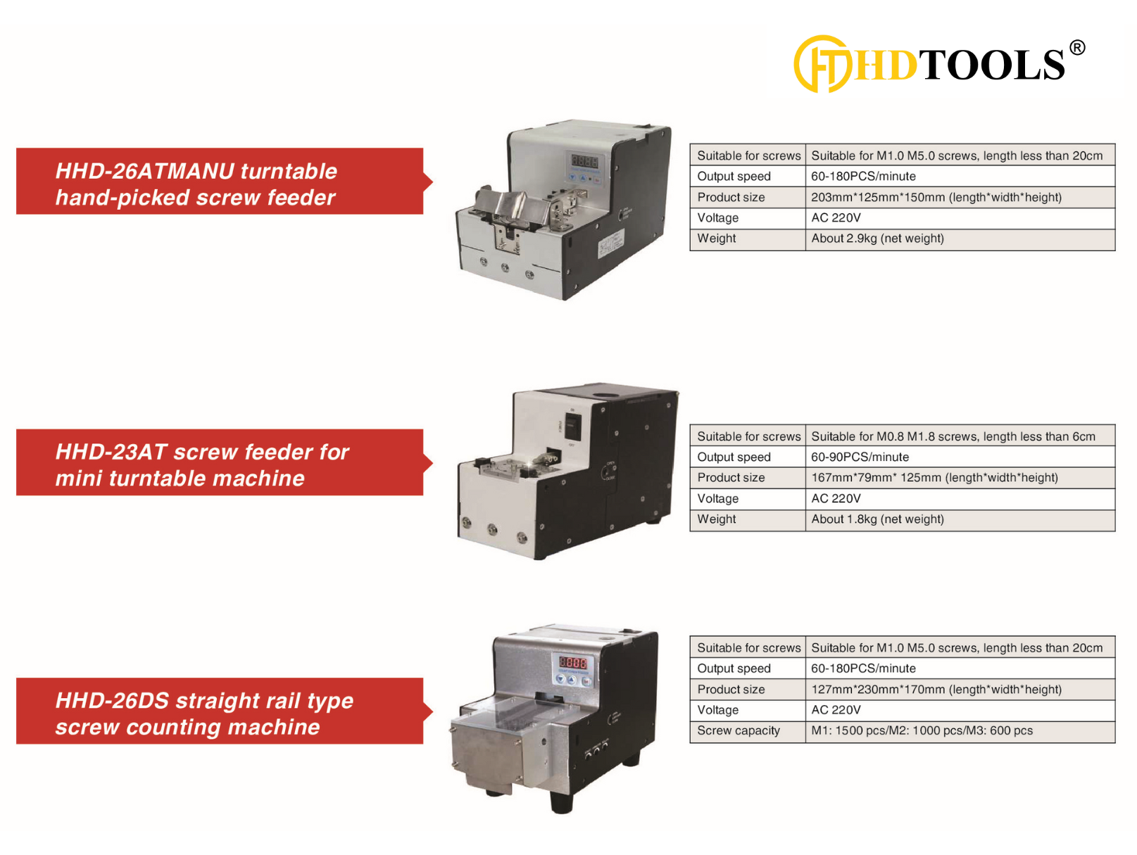 HHD-26ATMANU turntable hand-picked screw feeder / HHD-23AT screw feeder for mini turntable machine / HHD-26DS straight rail type screw counting machine