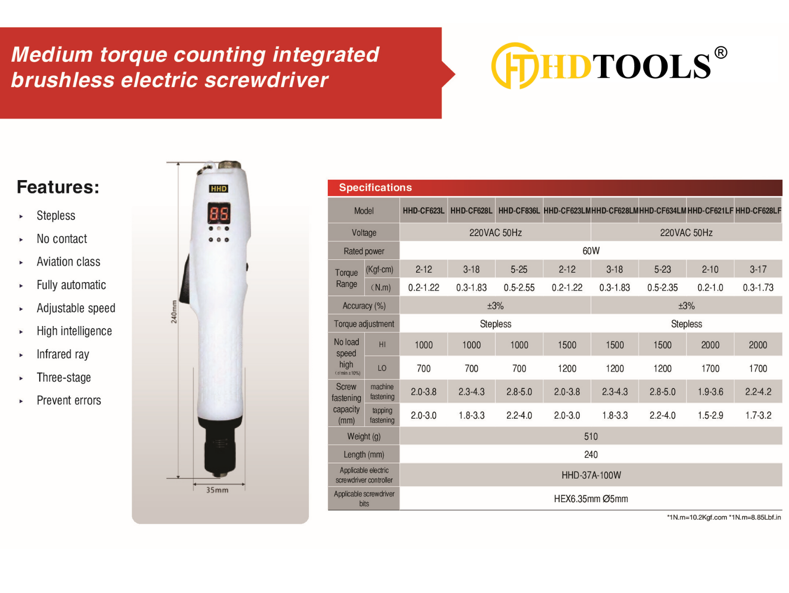 Medium torque counting integrated brushless electric screwdriver HHD-CF623L / HHD-CF628L / HHD-CF836L / HHD-CF623LM / HHD-CF628LM / HHD-CF634LM / HHD-CF621LF / HHD-CF628LF