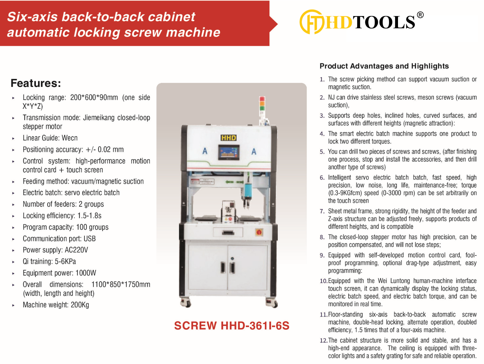 Model: Six-axis back-to-back cabinet automatic locking screw machine